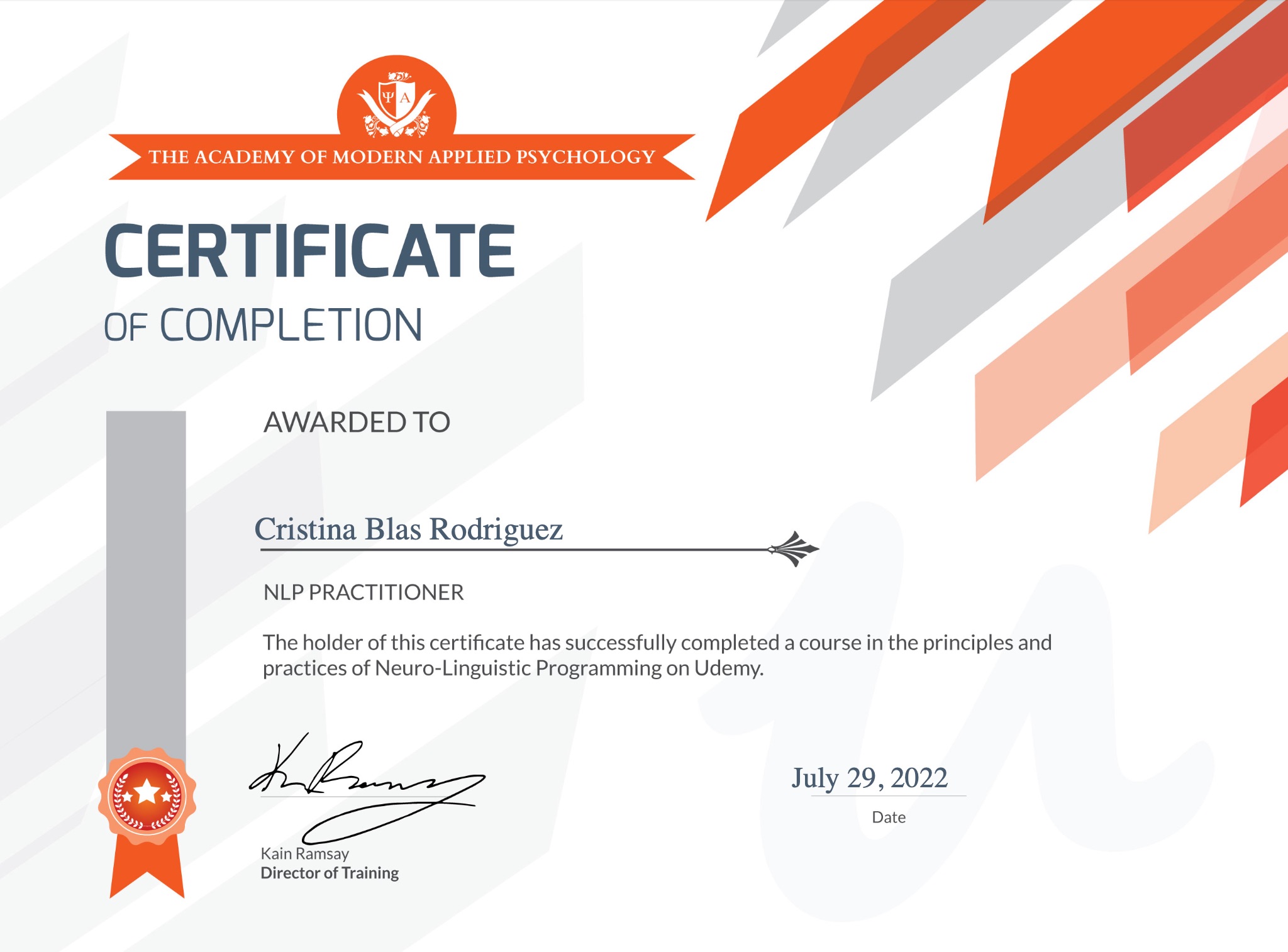 He complementado esta base con una sólida formación como Life Coach certificada internacionalmente, incorporando herramientas de Programación Neurolingüística (PNL), Hipnoterapia aplicada al desarrollo personal y un Diplomado en Psicología Moderna Aplicada, que me facilitan intervenir tanto en el plano emocional como cognitivo y corporal de quienes acompaño.
