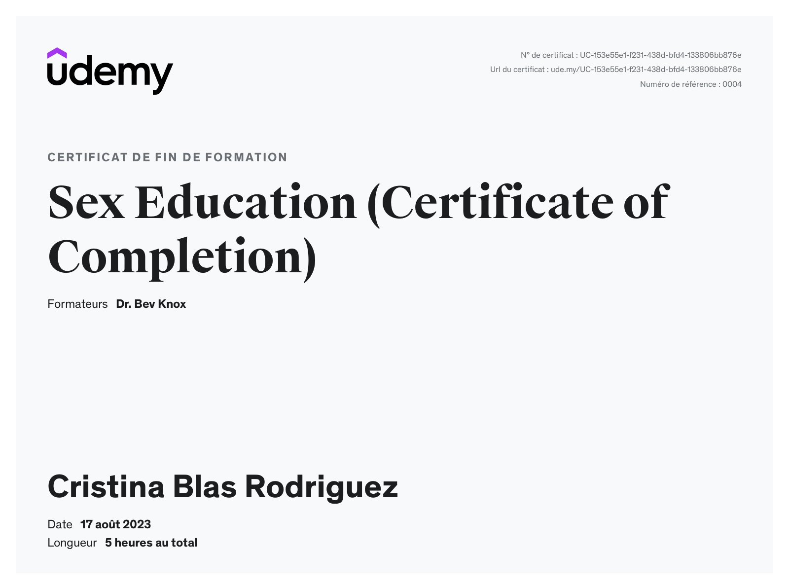 Mi recorrido formativo está completamente enfocado en el estudio de la sexualidad humana, el crecimiento erótico y el acompañamiento consciente de procesos íntimos. Durante más de quince años me he especializado a través de certificaciones profesionales en Educación Sexual, Sexualidad Humana, Relaciones Seguras y Psicología aplicada a la intimidad, lo que me permite ofrecer un acompañamiento serio, ético y profundamente humano.